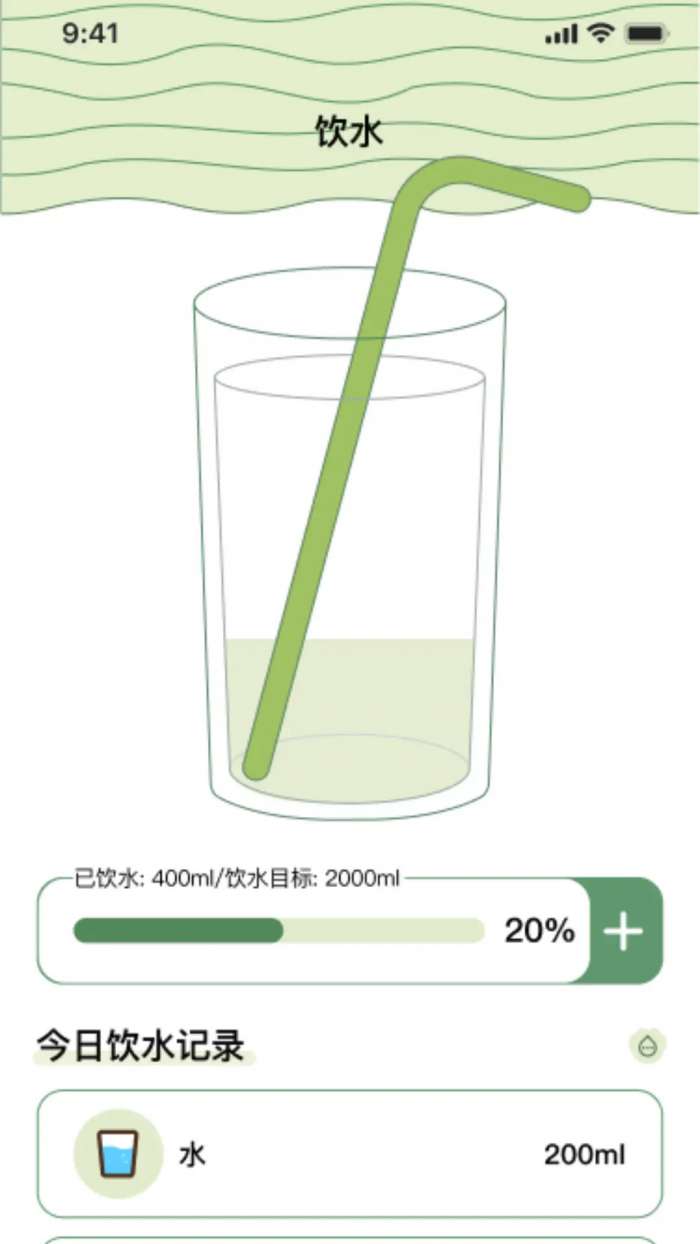 2、饮用水提醒系统:自定义饮用水时间周期和目标量,以养成规律的饮水习惯。