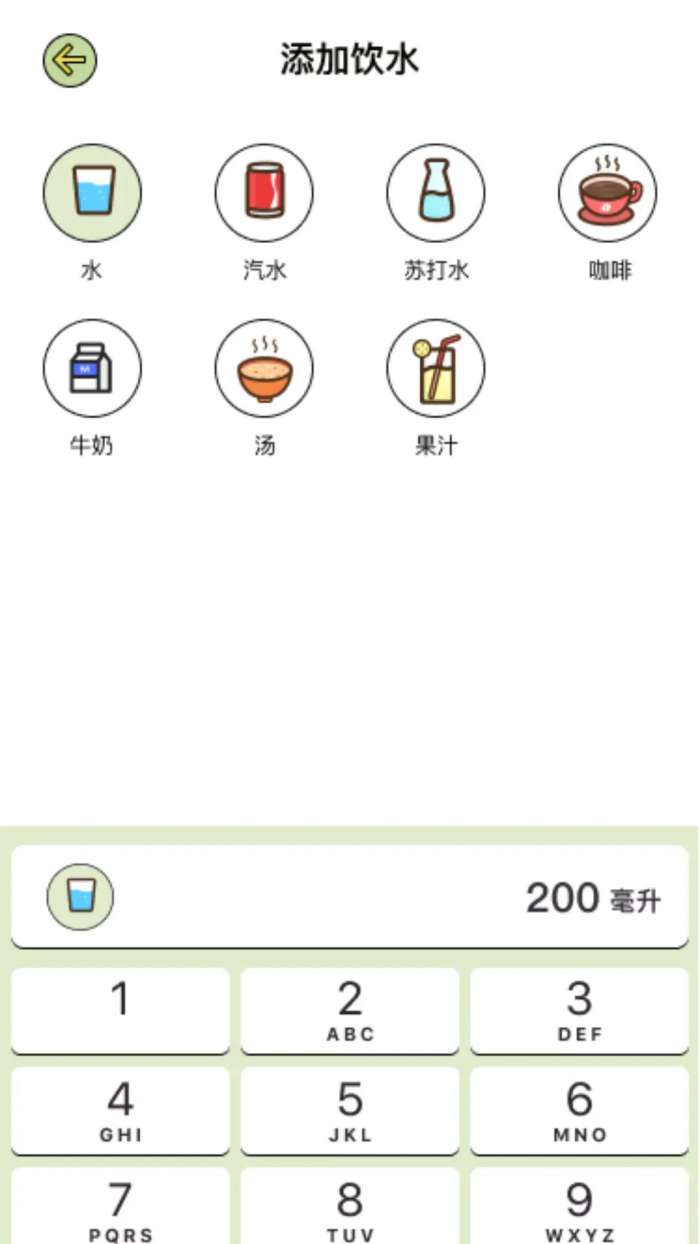 1、下载软件安装后进入app后,可记录用户喝水量。