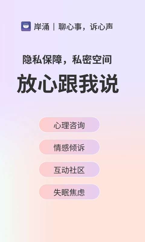 岸涌是一款全新的专业心理咨询软件,拥有在线心理咨询功能,可以让用户自由选择知名心理医生,轻松解决各种心理问题并释放压力,还提供个性化在线心理咨询服务,随时随地自由选择各种心理测试题目来进行试验,自由享受优质的服务,还具有全新的首页设计,用户可以轻松浏览各种心理相关的新闻动态和文章,随时在线阅读浏览,能完全满足所有使用需求,还提供24小时在线客服,随时为用户提供可靠的心理咨询过程。