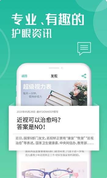 2、权威的护眼资讯+丰富的健康营养知识,将护眼意识渗透到衣食住行的方方面面。