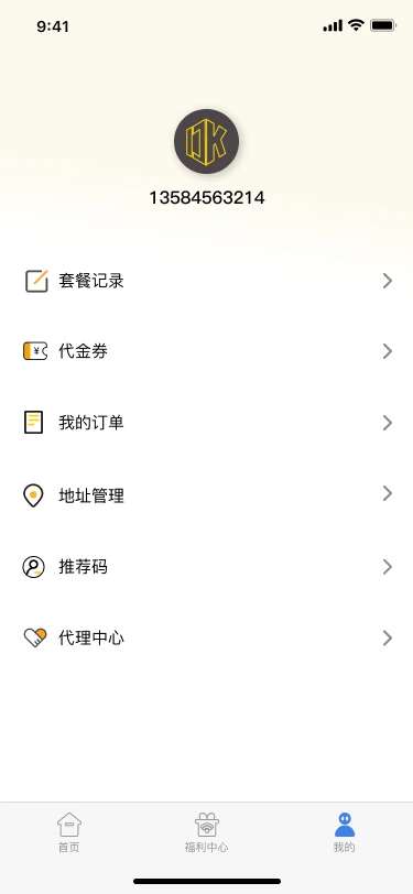 5、在个人中心就能查看历史套餐、代金券、订单等信息,还能管理地址。