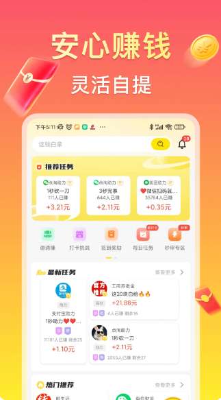 3、赚钱安心—— 赚钱任务审核通过,奖励金立即到账户,安心!
