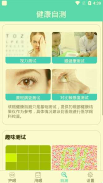 护眼天使是一款受欢迎的免费护眼软件,拥有多样化的护眼模式,允许用户轻松设置应用,随时随地轻松保护眼睛,及时帮助用户解决用户的视力受到屏幕蓝光影响的问题,还具有丰富的功能选项,无需任何经验即可上手使用,方便用户轻松开启各种护眼模式,自由关爱眼睛健康,还提供强大的视力自检服务,可以轻松进行视力测试,能完全满足所有使用需求,还能及时关注各种视力新闻资讯,轻松学习各种护眼姿势。