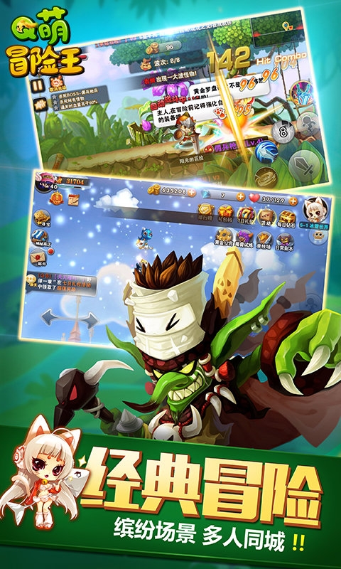 q萌冒险王超V版强势登场!快来一起找回童年的回忆吧!25驾坐骑,43只宠物,全新的现金装备,打怪爆10点点券,自由市场每分钟可获取经验与金钱。为你展现一个可爱活泼、玩法丰富、个性鲜明的冒险世界。多样化的装备组合,自由搭配的技能,跳跃、攀爬以及飞翔的动作设定,让你畅享操作自由。百变时装,酷炫翅膀,尊享称号,造就属于你独一无二的冒险世界。