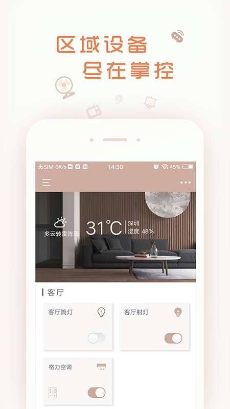 1、区域设备,尽在掌握:在连接区域内的家具软件均可通过APP一键掌握。