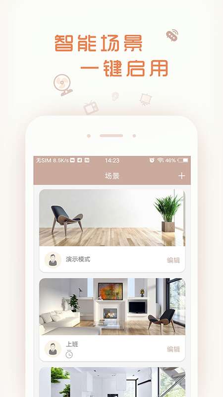 2、智能场景,一键启用:壹厘米APP中包含多种智能场景,用户可根据自己爱好一键启用场景。