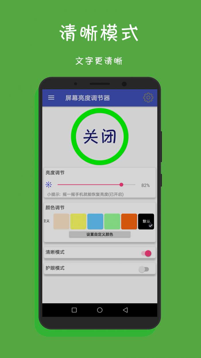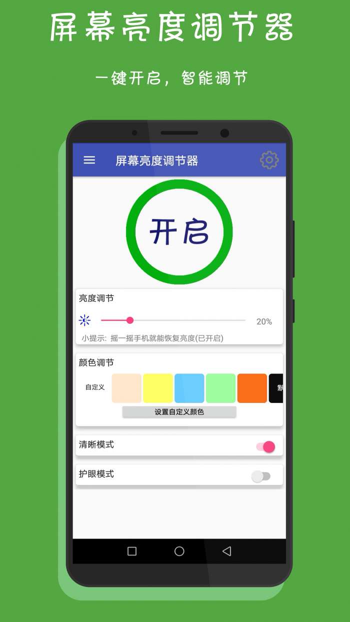 屏幕亮度调节器是一款能够让用户的手机进行各种颜色的屏幕调节的APP,这款平台中可以放心的进行使用,没有任何的广告干净又绿色透明的服务平台,让您在这里可以更加实用的进行调整,各种你所需要的护眼模式,让您的屏幕更加的拥有各种不同的设置功能,让您在这里更加的干净省电护眼的应用软件,当你进行使用手机后快速地进行调节更多的不同颜色的屏保以及亮度等各类保护眼睛的设置内容。