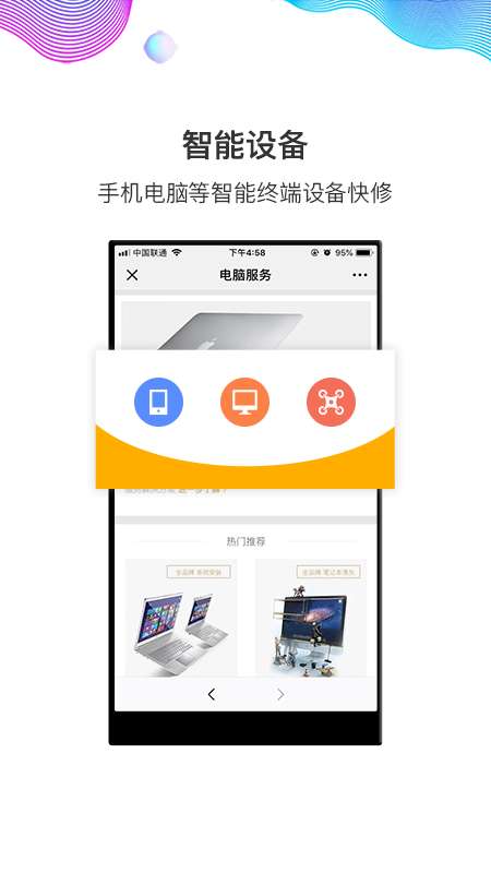 2、上门快修一键订单就会有专业的人员上门来为你修理设备的问题。