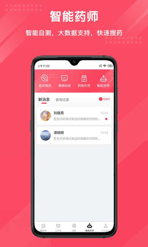 智能药师这是一款专为广大用户带来的生活实用类软件,生活中许多人都会经常出现头疼脑热等一些小毛病,可以直接在平台上进行问诊,专业医师将会为你带来最准确的诊治结果,免去了你在线下排队的烦恼,平台上还有非常多的健康小知识,让你快速解决自己身体上的小毛病!