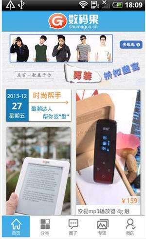 数码果手机版是一款专门正对男性用户打造的一款移动购物软件,本站为大家提供数码果手机版下载、数码果手机版软件介绍与数码果手机版使用心得,该软件收集了众多数码产品,和男装,致力于打造一个男版的淘宝软件。