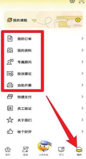 4、进入底部菜单栏「我的」页面,可查看个人订单、资料包、顾问服务、开票等账户相关信息。