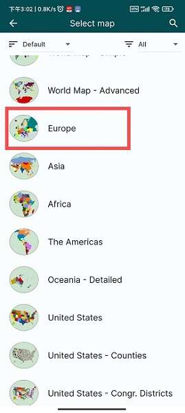1、打开MapChart app,点击creat map选择像编辑的地区或者城市地图。