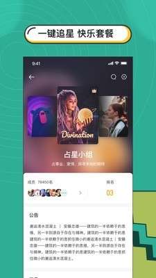 现在不追星的小伙伴应该很少吧,追星是一件非常累的事情,不过有了这款分子软件之后,大家能够更好的进行在线追星。大家能够在软件上面进行各种追星活动,同时也能够看到自己喜欢的明星的通告动态,了解自己偶像的最新动态。