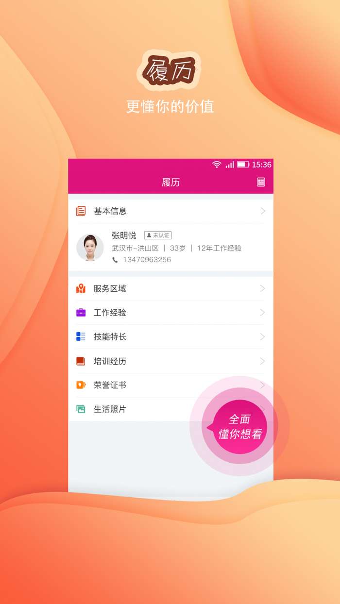 4、这是属于月嫂的客户端可以事实上的的在上面曲家信息掌握自己客户的详细的详细。