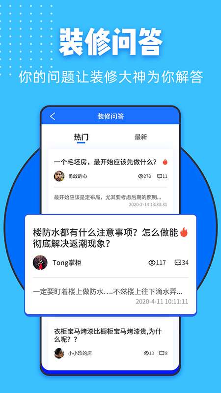 2、装修问答,很多不同的装修大神以及装修的各类问题,都可以通过平台来快速进行提问,帮助每一个各种问题的人得到解决