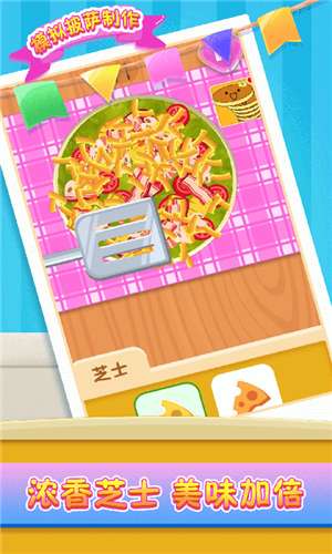 游戏中的玩法丰富多彩,还有十分精美的游戏画面,玩家在游戏中需要制作出各种不同口味的披萨满足所有顾客不同口味的要求,成为一名优秀的披萨制作厨师,还要注意通过调味和配菜来调理味道。