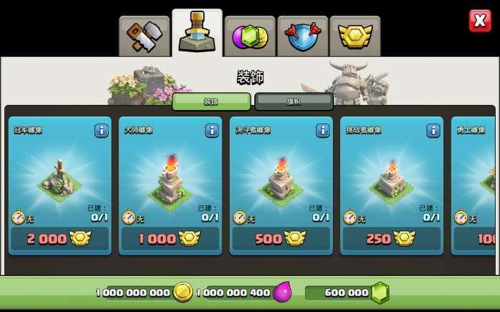 (1)有两张村庄地图,分别是第一大本营和第二大本营。四级以上的玩家可以点击原第一大本营岸边的修理船,送到第二大本营。这两个大本营的钻石是共享的,其他金币、圣水、各种建筑、各种资源都是独立的,玩家单独使用。