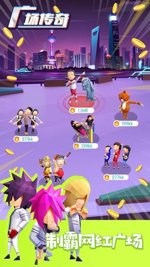 广场传奇是一款非常简单休闲的放置类游戏。在游戏中玩家将会带领各色的明星人物一同占领广场并制霸全场。玩家能够将不同的特色人物进行收集并能够组合成一个特色的广场舞队伍来进行游戏,而且在游戏中玩家能够使用金币来给他们进行升级完成各种人气比拼。