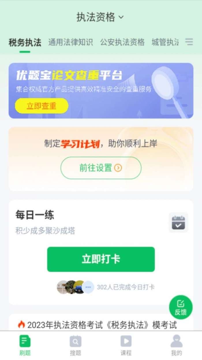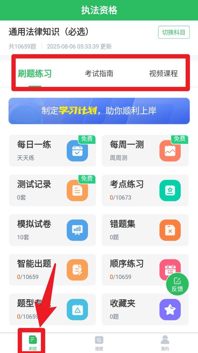1. 打开首页,点击下方的刷题按钮,便能看到每日一练、考点练习、模拟试卷等模块,可自行选择练题的方式。