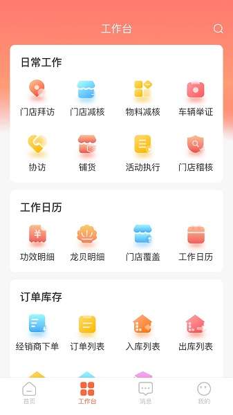 卫龙龙天下是一款专注经销商和员工打造的移动端工作软件,有效将诸多拜访、铺货、进销存、数据等管理功能都搬到了手机上,在应用中就能实现办公和管理,可实时在线掌握库存和销售情况,以便能及时补货销售,保障门店的经营效率。同时在线就能实现扫码签收,保存所有订单数据,并能在应用中高效进行管理,享受更加便利的服务。软件还能在线进行门店新增管理、合伙人管理等操作,均可在应用中一站式搞定,体验优质的服务。