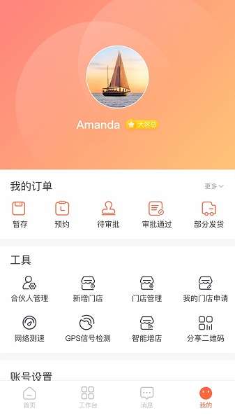 5、在个人中心可详情查看我的订单,还能进行门店以及合伙人管理等操作。
