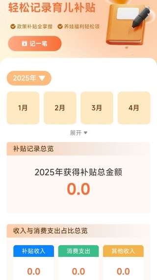 3、轻松在线可以记录每个月的育儿补贴金,随时在线可以浏览查询。