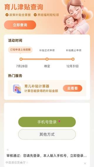 1、各种育儿补贴服务全部都有,在线可以轻松办理。