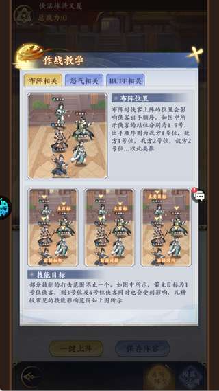 布阵的阵位将决定侠客的出手顺序,并影响技能的攻击范围。合理安排前排相邻、前排同排及后排同列等阵位,可以最大化技能效果,助你在战斗中占得先机。
