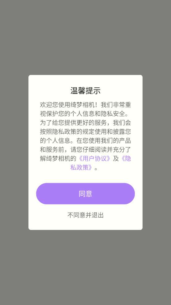 1、先在本站下载安装绮梦相机app,查看相关用户的协议和隐私政策。