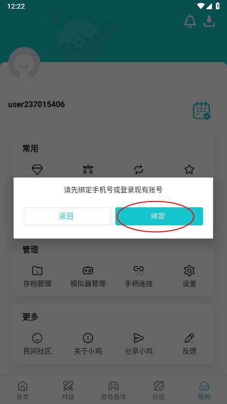 2、提示绑定手机号或登录现有账号,点击绑定。