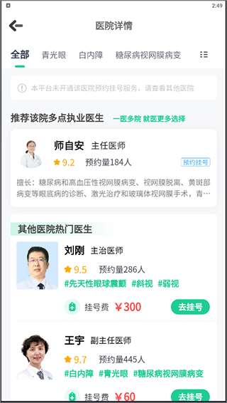 3、进入医院页面后,根据疾病类型选择相关医生进行登记。