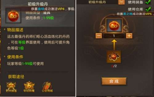 只能用于(1-99级升级使用)也可以升级丹碎片合成,需要2个碎片。