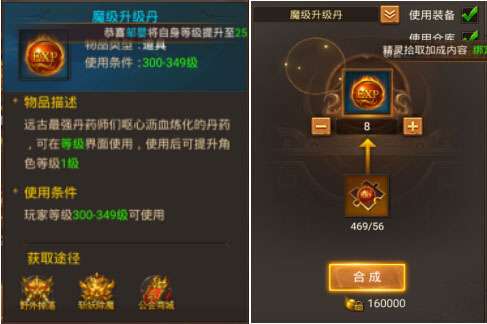 只能用于(300-349级升级使用)也可以升级丹碎片合成,需要56个碎片。