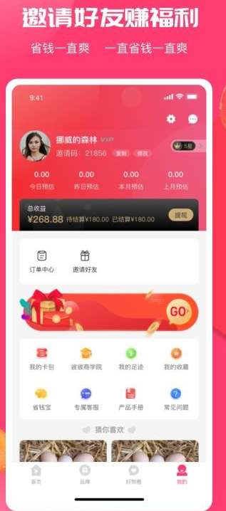 彼彼省家app是一款可以为用户节省很多钱的移动电子商务软件。在这里,它可以为用户提供大量丰富的产品优惠券,并收集淘宝、拼多多、京东等电商平台的优惠券信息。您可以在这里免费领取。它还为用户提供各种促销活动,让您在这里获得更多折扣,节省更多钱。同时,这里还会不定期向用户发放各种现金红包。也有大量的产品有大量的现金返还。你也可以在这里通过分享赚取各种利润。