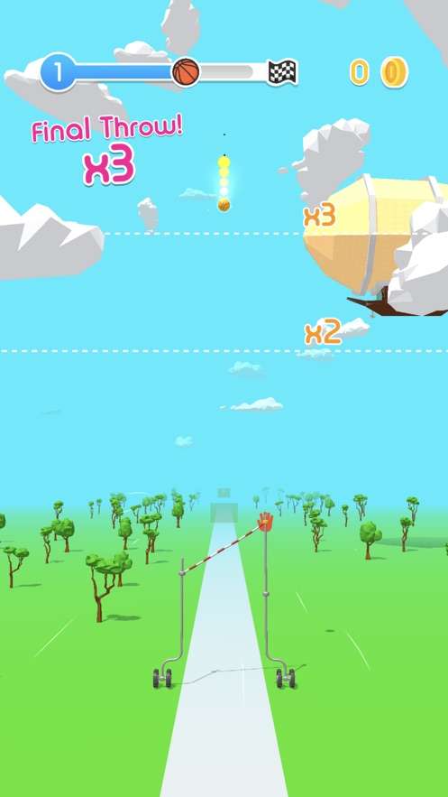 绳索vs球在这个游戏中大家会一个室外的场景在地上则会有一条很长的通道在上面还显示着不同的数值,玩家们要做的就是利用绳索把球射到远处距离越远越好,当然在通道上面会有不同的障碍,所以角度一定要掌握好。其实他的玩法就像是一个放大版的弹弓射击的游戏,尝试闯关几次几乎已掌握好自己的操作方式了。每一次都会出现不同的任务分数,自己尝试着刷新成绩。