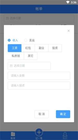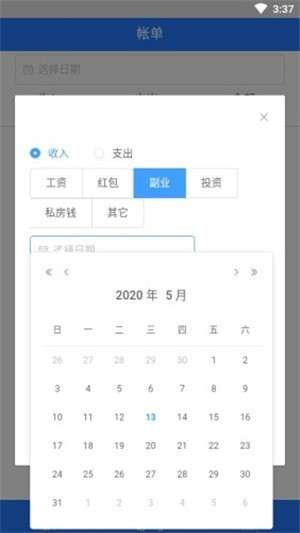 1.用户可以选择会计日期,可以记录当日的收支信息;
