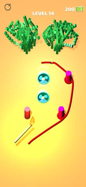 拉绳索3D游戏中吧绳索作为挑战的道具需要根据任务的提示把每一个的曹组哦完成就可以了,在场景中把不同的立柱缠绕好了之后就是开始向绳索点燃,后面就是将整个叠加好的方块物件全部倒塌这就是每一个挑战中的操作。之后的挑战中是可以看到很多不同的炸弹还有一些其他的障碍物件,挑战中的绳索的颜色都是红色的因为值点燃炸弹的点火线。