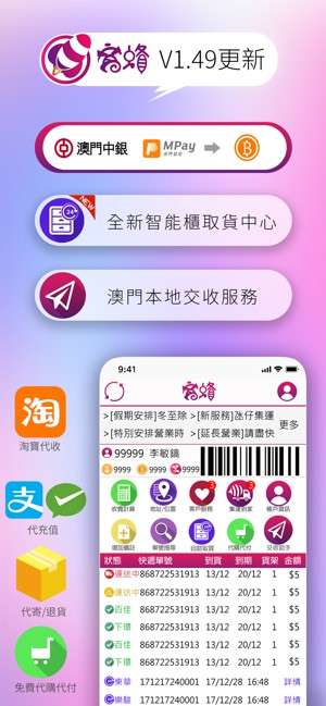 窝蜂代收是一款生活服务类软件,让每一位用户在澳门取货时无需任何排队过关,并且在配送方面更有遍布全澳门的24小时智能快递柜,让每位用户都可以去智能柜中根据自己的需求时间进行货物的提取,软件内更有会员积分概念,让每位用户通过取货累积个人账户上的积分,后续可以使用积分来免费兑换相应的配送,更可以代寄到国内,让每位用户以更省钱的方式来购买国内购物网站的优质商品,对APP有需求的用户快下载体验吧。