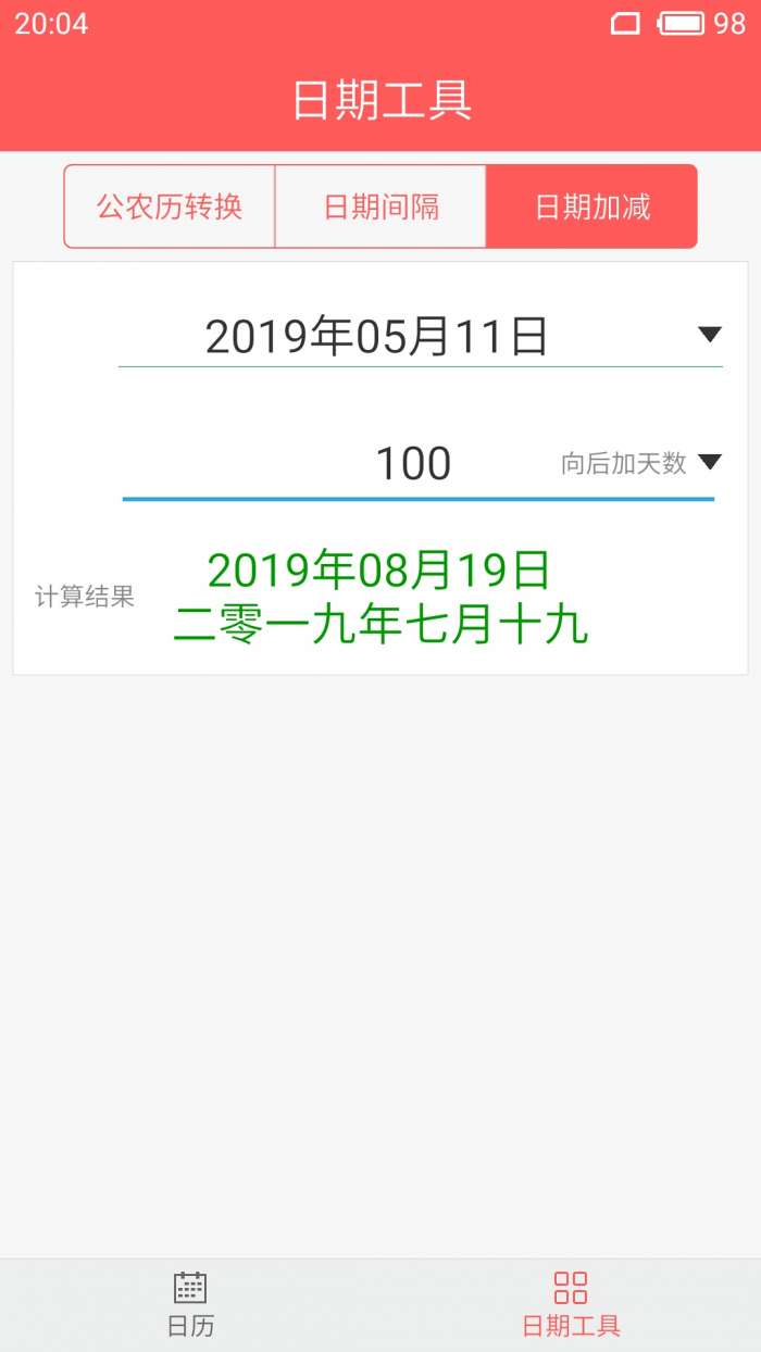 3、相隔计算,用户可以直接在里面通过两个日期来计算中间相隔多少天,也能计算两个人之间的年龄。