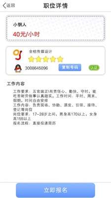 2.严格控制每一个兼职信息,为用户提供绿色的兼职平台!