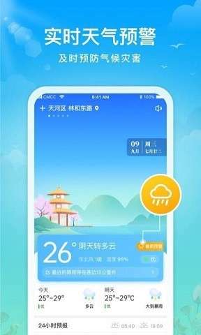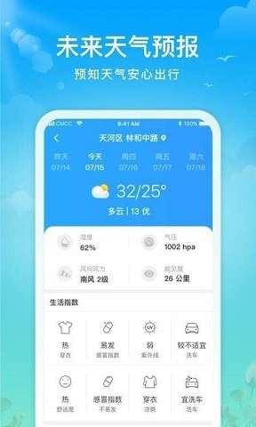 1.是一款使用非常方便的天气预报软件,将为你提供准确的天气预报。