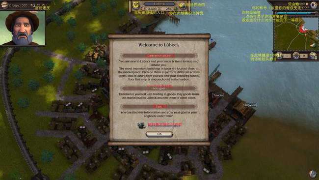 进入游戏。游戏有两种模式。一种是剧情战役模式,就是按照电脑的指定条件下,从LUBECK一步步发展为最后的汉撒同盟霸主。一种则是自由模式,就是你可以自由设定所有的条件来进行游戏。如果你是新手,还是建议你从战役模式开始了解本游戏。