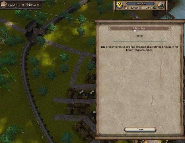 首先你要设定一个出发点,譬如下图的LUBECK。在出发点不要点击任何贸易货物到下面的2个交易栏