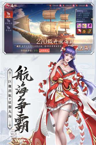 打造自己的战船,用坚船利炮抢夺海权,占领海岛,夺取经验图腾;斩杀妖王,收获宝箱奖励,挑战海洋之神,成为海上霸主。