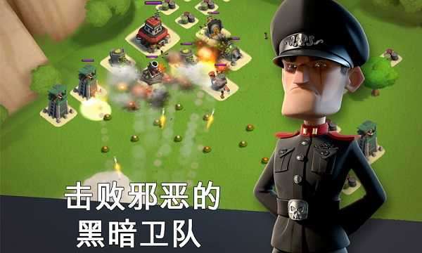 《海岛奇兵》在战斗模式上与COC还是区别比较明显的。本作从COC的四面围剿变成了单方面突击,只能从沙滩指定范围内登陆。然后在海面上有战舰提供导弹、医疗支援,同时还能释放引导弹进行实时打击目标指挥。至于坐着登陆艇成功冲上岸的士兵,全自动战斗,会优先攻击最近的建筑,这时就需要你引导他们集中火力,打掉敌方防御工事先。最后,只要摧毁敌人的司令部就能引爆敌人整个基地,获得胜利,拿到战利品。