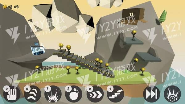 2.将这些火柴人聚集在一起,帮助它们成功的穿越这片区域,利用手中的道具;