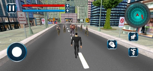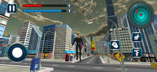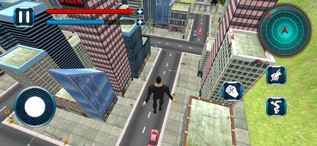 2、在空中毫无阻滞的观察城市,看遍城市的每一个角落, 让坏人无所遁形,一旦发现坏人,则立马教训一顿。
