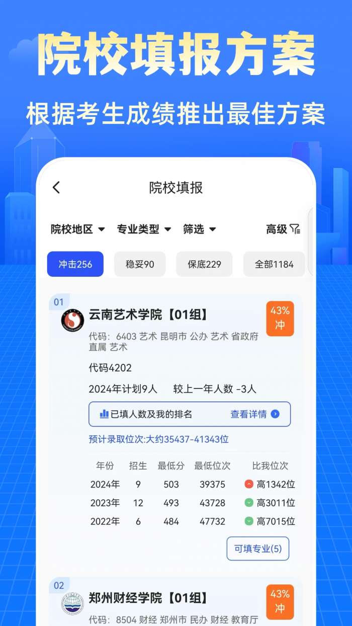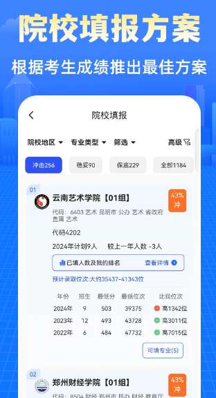 阳光志愿2025高考网为所有高考考生用户提供志愿填报指导服务,帮助用户选择最合适的高校进行填报,提高用户升学率,实现科学计划志愿填报。随时了解自己考试成绩成功的概率,更好地分析和选择报考大学公开所有大学的相关信息,随时了解自己感兴趣的大学,提前了解各大学的具体情况。此外,还可以在线查询大学专业,了解各种专业对应的大学信息。喜欢的话,马上下载使用吧。