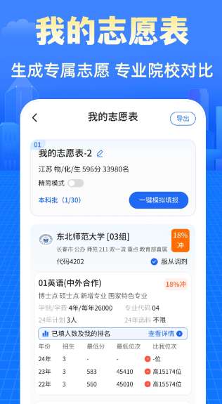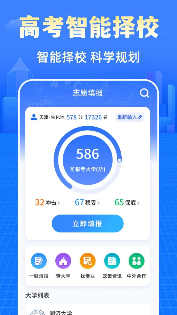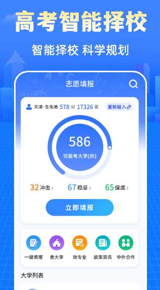 1、智能匹配大学 根据成绩精准推荐心仪学府。