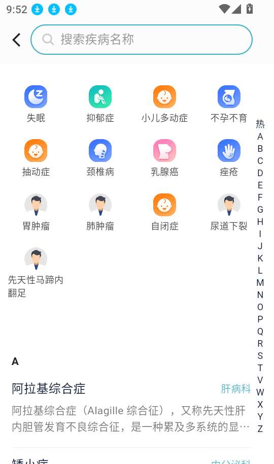 3、之后,您可以在界面中查看常见疾病,点击“疾病”按钮进入下一步。